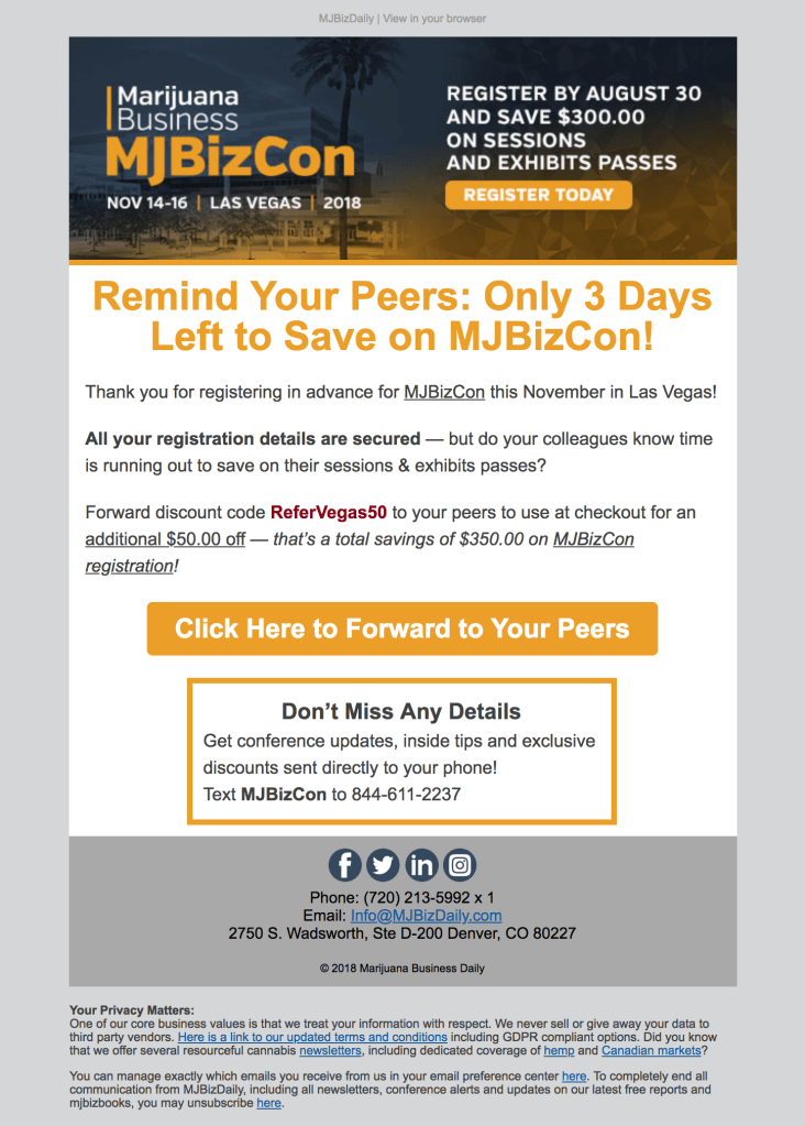 092018_MJBizCon_AttendeeReferral_SavingsDeadline Published 2018/10/05 at 1446 × 2020 in 092018_MJBizCon_AttendeeReferral_SavingsDeadline (EVENT) MJBizCon email to conference attendees to remind friends and coworkers to register